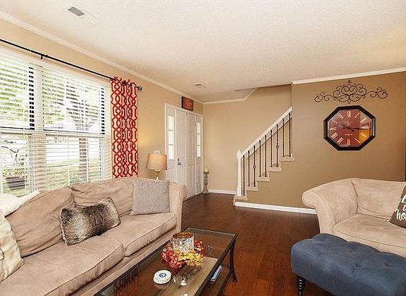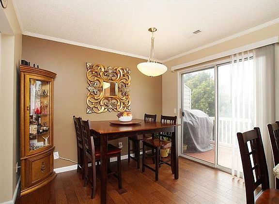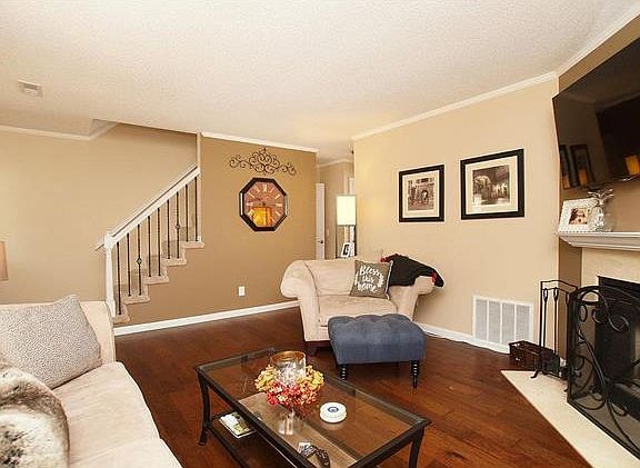 Open 8/13, noon-2pm. Fall in LOVE with this updated townhouse, just mins to Hwy 70 & 364! Cov Porch, front door & side lights is open to spacious living rm boasting a wood burn fplace with marble surround, crown molding. Beautiful distressed Hardwd on all of main floor. Custom light fixture in breakfast rm with sliders to large maintenance free deck! Kitchen with updated cabinets & hardware, all stainless steel appliances, granite countertops, pantry & undermount sink. Main floor laundry. Main floor 1/2 bath with adult ht newer vanity & granite countertop. Railings with metal spindles & friese carpet invite you to the upper level. Large Master bedrm with ceiling fan, window shelf & large dbl door closet. Totally updated bath with adult ht vanity, dbl sinks,granite countertop & separate toilet & bathtub/ shower room. 2nd bedrm is also huge with another dbl closet & ceil fan. Lower level boasts additional space, currently used as office. AND 2 car garage. Offers to be reviewed 8/14 6pm.
