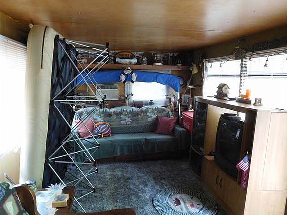 UNIQUE camping lot! Spaces to park multiple campers with available power supply for your campers....but check this out...there is a mobile/camper home on the property believed to be 1956 - 1958! You won't believe the inside! It has real wood paneling and is in great condition, doesn't leak, and it's like stepping back in time. Could use some love on the outside but don't judge this book by its cover. Trailer does not have water or usable bathroom but there is a path to the outhouse. No value given to the trailer and no title for it. Well groomed property and peaceful river waterfront. Has a good size steel roof shed that could be turned into a bunkhouse. Start creating family memories. Only 2.5 hours north of Metro-Detroit.