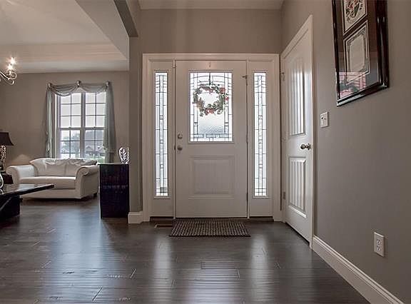 Rockwood School District! This 4 bed, 3 bath home has all the upgrades along with an amazing view of the lake right across the street. It features an open floor plan with hardwood floors throughout main level. Kitchen has 42 in custom cabinets, granite countertops and a large butterfly island that seats 6 comfortably. Throughout the main level you will find 10 ft vaulted ceilings, crown molding, coffered ceilings, scultured ceiling in dining room, light filtering blinds, recessed lighting and arched openings. The sliders to the trex deck have built-in blinds for easy maintenance. Walkout basement has 9 ft ceilings, a full bath, large bedroom, rec/living area and wetbar perfect for entertaining. The basement sliding doors lead to a nice patio. Backyard has rod iron fence and an amazing view overlooking wooded area. Washer/dryer hook up in basement and main level, 2 water heaters, humidifier, water sprinkler system, insulated garage doors, alarm system w/2 pads. This is a must see!!