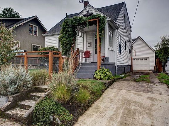 Sweet Bungalow with charm remaining intact! 2 bedrooms/2 bathrooms (yes! two master bedrooms). Claw foot tub in master and hardwood floors on main. Basement is semi-finished w/ access from just outside the back door- 600 additional square feet of storage or shop space in the basement area. Huge oversized garage for potential living space or accessory dwelling-buyer to do due diligence on upper level of garage and add finishing touches. It is a sweet bungalow with touches from the past. Close to freeways and parks.