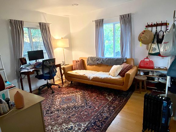 If you are interested in renting a house in Berkeley, this could be the place for you. Due to COVID concerns, we are doing virtual showings (Facetime/Zoom) only. We will be able to do in person showings starting 12/10. The house for rent is about 500 square feet and is located at the rear of our large lot. It is totally detached and shares no walls with anyone, anywhere. In our yard we have many fruit trees including pears, apples, lemons, limes, and figs. We have an herb garden. We grow a lot of food in the back yard and spend a fair amount of time back there. You have your own entry way through a gated, lit driveway and then the house is short walk to the rear of the property up the paved driveway. It's clean and tidy. It has a good size kitchen with a gas stove, full size fridge, a living room, bedroom big enough for king size bed, and bathroom. There's a decent amount of fenced in yard space dedicated to the cottage itself as well as a nice rear deck and small front porch. If you like to garden the yard is basically a blank slate (current tenant doesn't garden). There's a small concrete pad where you can set up a table and chairs, and plenty of open space to grow vegetables or flowers. Up to you! There is newer bathroom tile in the shower, a small bathtub and solid bamboo floors throughout. It's a modern building. Gas stove, electric heat (but PGE gives you a discount on electricity because of it). Washer/Dryer in unit. The neighborhood is South Berkeley....so many bonuses it's crazy! Basically EVERYTHING is walkable from this location. The Berkeley Bowl(s) are each minutes away as is 80, 580 and 24. San Pablo Park is 3 blocks away and features tennis, baseball, basketball, and a dog park. We are looking to rent to people who are eco-friendly, environmentally minded, relatively quiet, and friendly. In the past we had dogs, and we intend to get another dog again some day. Because of this, outdoor cats are not an option. A dog is definitely an option for you. There is some ability for additional long term storage in our attic depending on what and how much. All utilities for the cottage are the tenants responsibility: gas, trash, water, electricity and internet/cable. First month's rent and security deposit due at signing. No smoking inside. To be considered for this unit please make sure your credit score is around 700, you make about three times the rent and no prior evictions and/or lawsuits with a landlord.