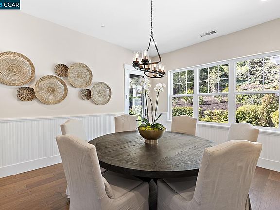 Stunning single level custom home, designed by esteemed local architect Alan Page in 2017. Fabulous location on beloved Rancho View Drive. Sophisticated West Coast living, built with utmost care featuring soaring vaulted ceilings, open floorplan, hardwood floors and quality design features throughout. Gourmet kitchen with oversized calcutta marble island, Wolf double oven & 6 burner gas stove, Sub Zero refrigerator and charming eating nook, all adjacent to the expansive light & bright Great room with gorgeous fireplace. Elegant dining room with detailed wainscoting and view of gardens. Living room is welcoming with beautiful fireplace and spacious windows to enjoy the views. Primary bedroom suite with open vaulted ceilings is enhanced with luxurious walk-in closet, oversized stand alone tub, spacious shower and heated floors. Entertain or just relax in the irresistible backyard with outdoor loggia and fireplace, lawn, rose trellis and raised bed garden. Three car garage offers much sought after space for vehicles and storage. Located in top Lafayette and Acalanes School District. Convenient to nearby trails, shopping, restaurants and more!