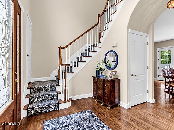 Welcome to Sterling Woods, that tucked away neighborhood just off the Manasquan River and ideally located within proximity to everything that the Jersey Shore living has to offer. Soaring ceilings, rich hardwood floors and a stunning open floor plan are just the beginning of this magnificent home. The chef's kitchen, which opens to the morning room and great room is complemented by double wall ovens, a butcher block island and breakfast bar that sits 4 with a walk-in pantry to die for. The soaring 10' ceilings on the main level allow for massive amounts of natural light and the open floor plan is further accented with a floor to ceiling stone gas fireplace and three sets of french doors leading to a deck overlooking a private, partially fenced... ....rear yard. The primary bedroom has vaulted ceilings, a walk -in closet and a spa bath. Three additional spacious bedrooms ,ample closets, hall bath and laundry complete the second level. A full unfinished basement with high ceilings offers endless possibilities. The option to join the Sterling Woods Association is available giving you access to the river for boating, fishing, kayaking and paddleboarding. This property is available for immediate inspection and occupancy. This is a must see & will not disappoint...