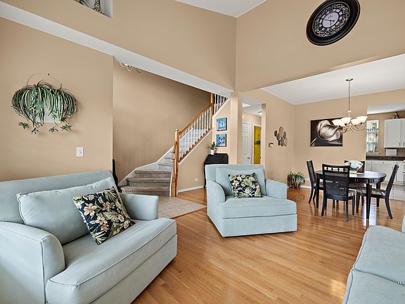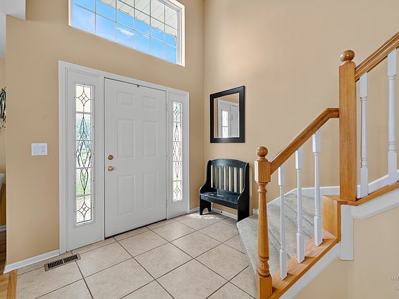 Move-in ready 4 Bedroom 3 and a half bathroom home featuring a finished basement and 3 car attached garage in popular Woodscreek neighborhood. Enter through the 2-story foyer highlighted by porcelain tile and leading to the open kitchen and family room area. Kitchen features white cabinets, quartz countertops, and Stainless Steel appliances. Hardwood flooring, great natural light, and vaulted ceilings are just a few of the great features. Brick wood burning fireplace with gas starter in the family room. Second level includes 3 Bedrooms and an office nook. Primary bathroom includes a whirlpool and separate shower. Second bathroom was recently remodeled with spa-like rain head shower. Full finished basement offers a 4th Bedroom with Cedar Closet, and potential kitchenette. Plenty of storage space, fenced yard with concrete, epoxy covered patio, and dog run. New siding and roof in the last 10 years.