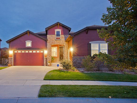 Stunning ranch in Reunion's coveted Back Nine. This home is beaming with modern farmhouse flair the minute you arrive thanks to the stone, iron gates, rich color and wood brackets. The backyard is beautifully landscaped and comes with a built-in gas line for grilling - the perfect combination for entertaining and enjoying the amazing Colorado evenings. As you step inside you will be greeted by gorgeous wood floors in the main living area and spacious office. Continue on to find another striking feature of this home, the wrap-around fireplace encased in dark granite. While you cozy up to the fireplace you can also enjoy the ultimate entertainment experience for movie nights or the big game with the built-in speakers. The kitchen is upgraded with granite, stainless steel appliances, and a double oven! The master and 2nd bath have handsome tile work with rich tones and rubbed bronze fixtures. Ranches this nice don't come along often. Don't miss your chance to own in Reunion's nicest area.