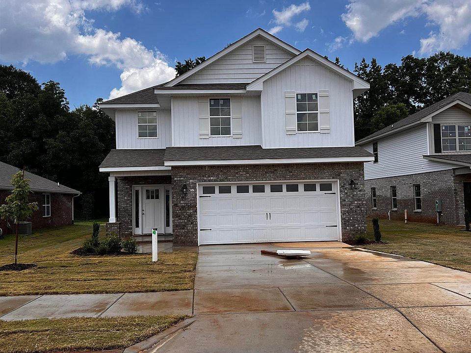 Create family and friend memories with this welcoming open floor plan that offers 9' ceilings and laminate wood flooring in the family room, kitchen, and dining room. The kitchen has granite countertops with kitchen island, ss appliances, large pantry, and white-soft close cabinets. The Master Suite has trey 9' ceiling with large walk-in closet. The master bathroom suite has separate shower, garden tub, double sinks with granite. Walk-in closets in every bedroom. Enjoy the summer nights on your covered back porch over looking nature. Backyard is private. Walking trails and future playground. Conveniently located to Huntsville and Decatur, shopping, and restaurants.