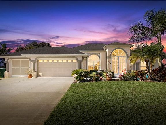 Waterfront home on an OVER-SIZED TIP lot OVERLOOKING INTERSECTING CANALS!! The screened front entrance welcomes you to an open and airy floor plan with fantastic views to the peacefully landscaped backyard and wide waterways beyond. Among the many features of this home are a formal dining room, master suite with French doors to the lanai, custom shelved closets and a bath oasis with soaking tub. The fully equipped kitchen has an island and solid cherry cabinets and the laundry room is lined with shelves and features a skylight and pull down ironing board! Both guest bedrooms are generously sized, and the 3rd bedroom is currently outfitted and used as an entertainment room complete with surround sound (which is connected throughout the house). The deep custom shelving is easily converted back to a closet if that is your preference. Textured paint, an abundance of plant shelves, rope lighting, rounded corners and bullnosed granite counters add a polished touch. On the practical side, there is manablock plumbing, home monitor security, 4 wells for irrigation, central vac, solar hot water heater, double pane windows and much more. An additional LIST OF FEATURES is attached. Be sure to watch the attached video and scroll through the photos, and you will say "yes" to first class Florida living!
