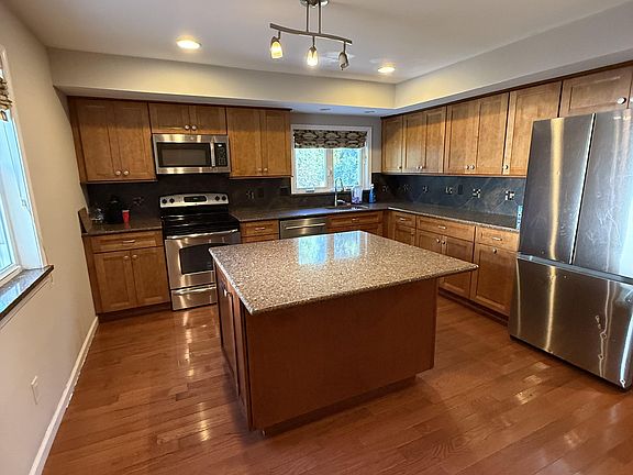 From the moment you enter, you'll notice the gleaming hardwood floors and thoughtful, open layout. The main floor includes a formal living room, a spacious family room, separate dining area, and a stylish guest bath. The fully renovated kitchen is a true centerpiece, featuring a large center island, granite countertops, upgraded cabinetry, and a modern tile backsplash perfect for both everyday use and entertaining.