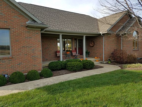 1842 sq.ft. up and 1842 sq. ft. down , full basement 9 ft. ceiling partially finished ,ranch all brick,3 bedrooms,3 baths,laundry room,large open living room with cathedral ceiling, big kitchen lots of cupboards,garage 828sq.ft., 22ft.x6ft. porch,and 20ft.x24ft.trex deck,14ft.x18ft. patio, geotheral heat and central air, on 2.35 acres phone 1 937 394 2513