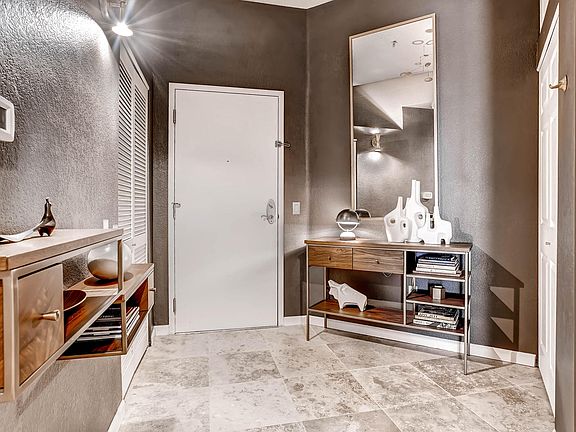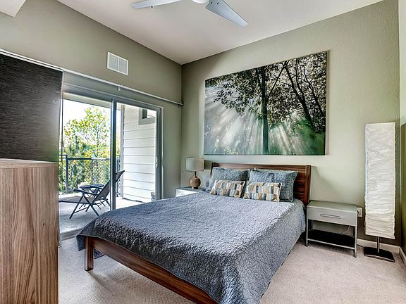 Sleek, modern condo in a convenient location minutes to DIA, public transportation, and now easily accessible to downtown on the A Train! Hip finishes, high ceilings, and smart layout make this condo stand out far above the rest for it's luxurious feel at a unbeatable value. Gorgeous bamboo floors, exquisite travertine tile, brand new carpet in bedroom, beautiful concrete finish countertops, warm designer paint colors, wade pool sink in bathroom, upgraded fixtures, and closet organizer system create sophistication and comfort. Enjoy summer evenings on an oversized balcony which opens to both living room and bedroom. Unit comes with 2 deeded parking spaces #22, #72 in an electronically controlled garage with elevator access. Second bedroom is non-conforming with no door but does have a nice sized closet. HOA includes heat, water, and community hot tub. Washer and dryer are included. Welcome home!