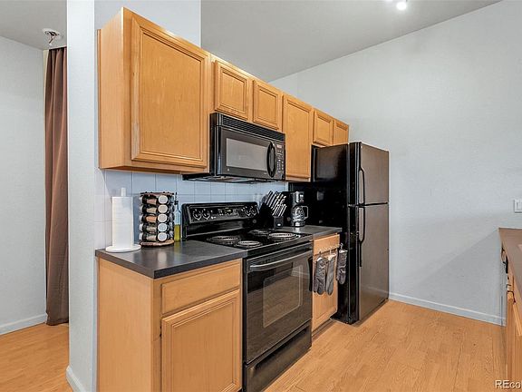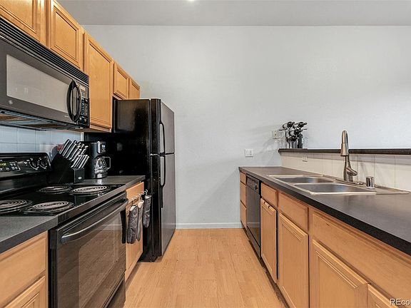 Welcome to this contemporary style 2 bedroom, 1 bath condo with 10 foot ceilings and lots of natural light. You’ll love the oversized balcony, which adds a great amount of outdoor living space that’s perfect for relaxing or entertaining! Enjoy the privacy of a tree-lined view from the main bedroom’s sliding door, which also leads to the balcony. A spacious en-suite bathroom features a soaking tub. The second bedroom is ideal for a work from home space. Ample storage within the condo and an in-unit washer/dryer. Deeded underground parking space in secure garage plus outside parking spaces. Community offers an outdoor hot tub area and many grassy areas for your pet. Quick access to I-70, I-225 and E-470! You’re minutes away from RiNo, Northfield, DIA and RTD lines: enjoy Denver and leave your car at home!