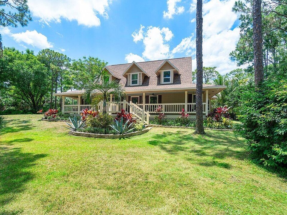 Impressive two-story single-family home LISTED BELOW APPRAISED VALUE! perfectly situated on an expansive 1.35-acre corner lot within the prestigious Palm Beach Country Estates. This property features 3 bedrooms, plus office, 2.5 bathrooms, and a generous 3-car garage, offering an abundance of space, crafting the ideal setting for a variety of floor plans to suit any lifestyle. Upon entering this spacious home, you are greeted by soaring ceilings and an inviting living room complete with gas fireplace and adjacent to large kitchen with a central island, lots cabinet space, plentiful marble top counter space, perfect for entertaining large gatherings. It opens to a cozy dining area and a den with a charming bay window. Also located on the first floor is immense master suite that boasts a.. custom walk-in closet and a luxurious ensuite bathroom equipped with a jacuzzi tub and a multi-head shower system designed for ultimate relaxation. The suite is complemented by an adjoining office that overlooks a lushly landscaped pool and yard, creating a perfect blend of comfort and tranquility. The second floor presents two large bedrooms connected by a Jack and Jill bathroom, complete with dual vanities, a separate tub, a shower, and a private water closet. Stepping outside to enjoy Florida sun from large covered screened patio, take a dip in aqua clear pool or simply soak away muscle aches in top-of-the-line Thermospa. Additional features of this remarkable home include a hobby room adjacent to the utility room and a spacious attic space over garage offers the potential for conversion to meet a variety of needs. 50 x 50 gravel pad w/electric for RV or boat storage, 3 zone A/C, impact windows, roof replace 2024, just to name a few, see attached improvement list. This home not only delivers luxury and comfort but also the flexibility to create a space that's truly your own. Seize the opportunity to own this versatile and beautifully designed home in a coveted location.