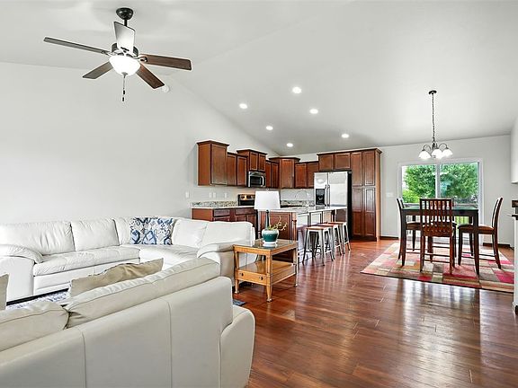 Built in 2015, this great one-owner home offers 3 bedrooms, 2.5 bathrooms, and a layout designed for comfort and function! The main level features a welcoming living room with a large front window, an open kitchen with stainless steel appliances, granite countertops, and an island with seating. A connected dining area provides access to the deck and overlooks the lower family room with a fireplace framed by a built-in bookcase and a second slider door that opens to the patio and fenced yard—ideal for everyday living and entertaining. A main-level laundry room and convenient half bath are located just off the attached two-car garage. Upstairs, the vaulted primary suite includes a private bath with double vanity and walk-in closet. Two additional bedrooms and a full hall bath complete the upper level. The unfinished lower level offers generous storage, an egress window, and is already stubbed for a bathroom—providing excellent potential to add a fourth bedroom, recreation room, or additional living space. This home perfectly blends comfort, practicality, and room to grow—schedule your tour today!