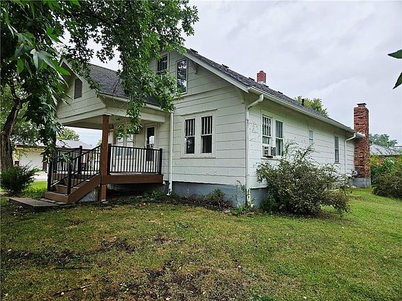 Lots of space in this 2 bedroom 1 bath home with a loft upstairs that could be an additional bedroom or two. Walk in the back door to an open concept living/dining/kitchen area. this living room has a wood burning stove fireplace insert and open kitchen with lots of cabinet space. Beyond the kitchen is an additional large family room with 2 bedrooms downstairs. The upstairs has been used as a non conforming 3rd bedroom and is big enough to be a large master or could be split into 2 bedroom area. Home is on an unfinished basement that has been repaired with bracing. Very large corner lot with patio area and large shed that has power and lighting. Great neighboorhood in Osawatomie.