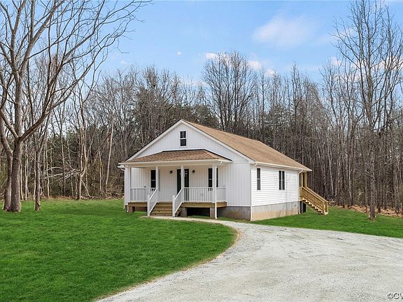 Welcome to 1548 Carterville Rd. This lovely cottage is located on a 3+ acre wooded lot in beautiful Carterville, VA. The home features a lovely open floor plan that is different that most anything currently offered in the market place. As you enter the home you have a great view of the living room and kitchen areas featuring LVP flooring, recessed LED lighting, and an abundance of cabinetry. Within the kitchen you will have a prep island, granite countertops, white cabinets, pantry, and stainless steel appliances. Just off the kitchen is a great mudroom/laundry room with closet space and direct access to the rear covered grilling porch. Not only is there a great primary suite with a tiled shower and large walk in closet, there is another bedroom with an attached bath. It's almost like you have two suites! Outside the home you have both covered porches, 3+ acres of land for exploring, a generally level lot, and a great rural location. This home also has direct access to FIREFLY HIGH SPEED INTERNET! Come check it out and if in time you can help personalize the last of the home finishings. We hope you call it home!