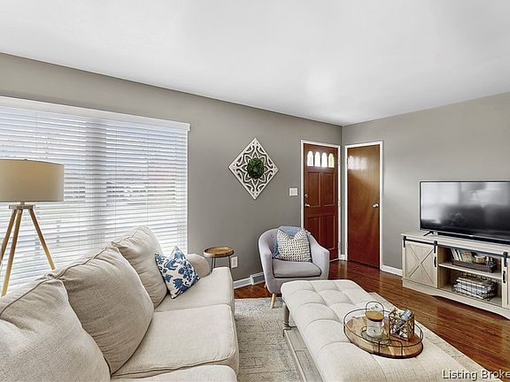 Gorgeous... MUST SEE... Immaculately maintained 3 bedroom & 1.5 bath home. Updated kitchen & bathrooms. Beautiful, refinished hardwood floor on the main level. Custom window blinds throughout. Enjoy the large, finished basement outfitted with luxury vinyl plank flooring & bonus room. Roof, windows, & stainless-steel kitchen appliances are just 4 years old. The fenced in backyard is home to a shed for storage. Quiet neighborhood conveniently located just 10 minutes to Louisville.