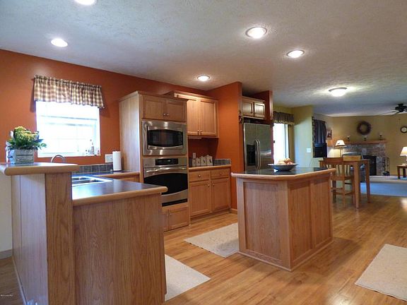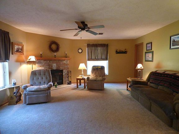 Welcome to the Country with all it's fresh country Air, sights and sounds! Located on fully fenced, 1.5 Acre parcel, with lake as your back neighbor offering beauitful views.This 2007, 3 bedroom, 2 bath, 2040 sq ft ranch, Shows Beautifully!! 2 car attached garage. Bedrooms offer large walk in closets. Kitchen is a Cooks' dream, all stainless appliances included and Large pantry. 2014-12 x 12 3 Season Room off kitchen. Beautifully landscaped, plus your very own Island with a moat surrounding it, a waterfall and Bar!! Such a great place to Entertain!! Horse shoe pit too!! Storage Shed stays!