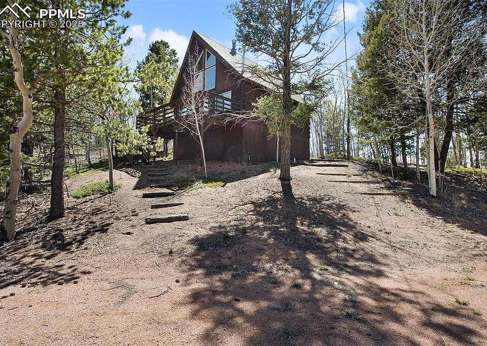 There is simple, and then there is simply beautiful! Your dream cabin in the mountains is now available! Beautifully remodeled interior features rock work, wood floors, beautifully tiled bathroom, hand hewn stair rail and trim, vinyl windows with top of the line shades. Below the 240 sqft loft with its Pikes Peak View is a 24ft long great room with beautiful wood floor, rock accents, log walls and more generous windows to let in the light, view and wooded setting. This absolutely adorable log cabin in the woods keeps it simple and classy. Home is not "wired" with tech, but can be if you decide to add it as its available. Both bedrooms are non-conforming. Storage closet under stairs would accommodate an all in one washer/dryer should you decide to install one. Privacy and views of Pikes Peak are the icing on the cake! Furnace has been cleaned and serviced as has septic system and water system.