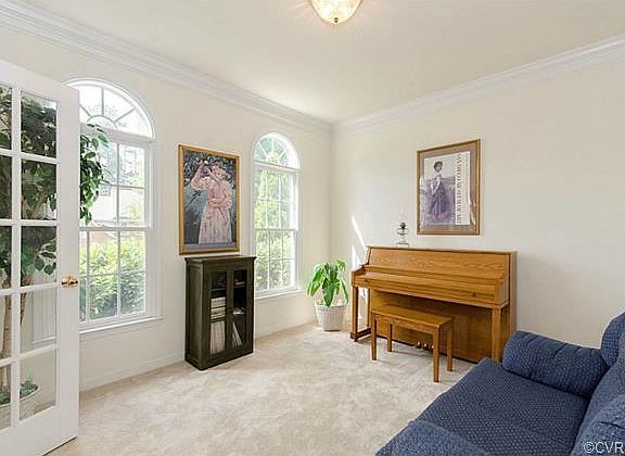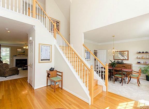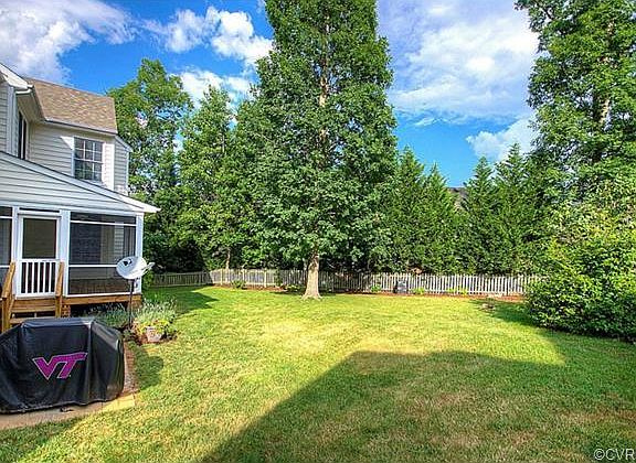 Spacious! Six true bedrooms and five full baths allow everyone their own space & privacy, all without sacrificing a bit of comfortable living or entertaining area. Impressive 2-story foyer welcomes guests, and elegant divided hardwood staircase lends easy access to the kitchen or front door. Formal dining and living rooms offer arched windows & crown molding, and 1st floor bedroom w/full bath make a great guest suite. Hardwood floors cont inue through breakfast area and kitchen, with plenty of cabinets & storage! Step out to the screened porch & new patio, overlooking a fenced backyard. 2nd family room upstairs, featuring fireplace & French doors, as well as a convenient home office. Charming 3rd floor with window seat and private bath make a perfect teen suite. Master bedroom with sitting area, grand walk-in closet and full bath (corner bathtub, sep. shower & doub le vanity) offer the perfect end-of-day retreat. Walk-in storage in garage leaves plenty of room for parking, plus more walk-in storage on 3rd floor. The Grove offers a clubhouse, pool, playgrounds, and walking trails to the pond, Mid-Lothian Mines Park & YMCA. Great schools, fine dining and shopping just minutes away!