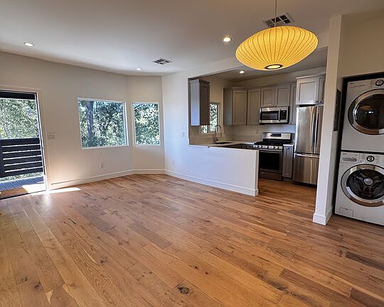 1548 Lemoyne Street in Echo Park! Perched above one of Echo Park's most coveted streets, this updated 2-bedroom, 2-bath home blends modern design with serene outdoor living. A private stairway leads you to an airy, light-filled retreat featuring wide-plank floors, recessed lighting, and a smart open-plan layout that connects the kitchen, dining, and living areas. The contemporary kitchen is outfitted with stainless steel appliances, quartz countertops, and shaker cabinetry perfect for cooking and entertaining. Both bedrooms are generously sized, each with access to sleek, remodeled bathrooms featuring glass-enclosed showers, modern fixtures, and stone finishes. The primary suite opens directly to a private terrace and garden area, creating an effortless indoor-outdoor flow. Out back, a tranquil hillside garden awaits framed by lush hedges and mature trees. Multiple sitting areas offer the perfect escape for morning coffee, reading, or entertaining under the stars. Situated in the heart of Echo Park, this home places you moments from the best of the Eastside. Enjoy easy access to Sunset Boulevard's cafes, boutiques, and music venues, including neighborhood favorites like Lassen's Market, Bacetti, Canyon Coffee, and Cookbook. Echo Park Lake, Elysian Park trails, and Silver Lake are just minutes away, and Downtown LA is a quick commute.