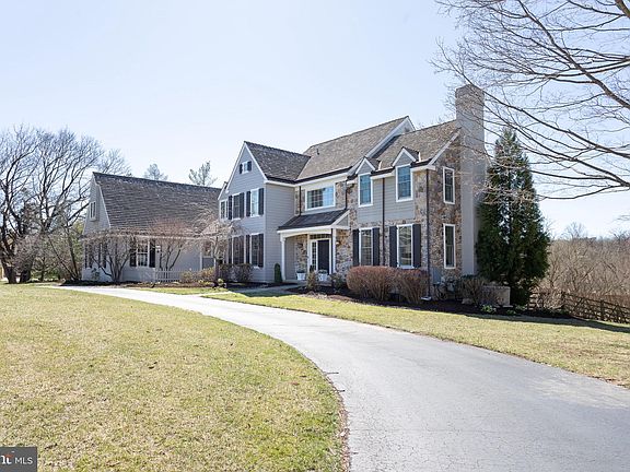 Welcome to this stunning 6,681-square-foot residence, located on a quiet cul-de-sac within the coveted Valley Creek Farm neighborhood of Malvern. Set on a picturesque 1-acre lot, this home is located in the highly esteemed Tredyffrin-Easttown School District, proudly ranked #2 in Pennsylvania. This home seamlessly combines luxury, comfort, and modern conveniences with the serene beauty of its natural surroundings. Upon entering the first floor, you are greeted by an inviting foyer featuring a stunning turned staircase and a thoughtfully designed office space. The spacious formal living room boasts French doors that open to its own private terrace, while the elegant dining room is perfect for hosting gatherings. The heart of the home lies in the charming family room, with a floor-to-ceiling stone fireplace, exquisite built-in cabinetry, and a convenient back staircase leading to the second-floor bedrooms. The gourmet kitchen is a culinary delight, equipped with top-of-the-line appliances and a breakfast area that opens onto a generous mahogany deck. From here, enjoy seamless access to the in-ground pool and spa, where you can unwind amidst the beautifully landscaped backyard that backs onto Valley Creek, a nature preserve complete with walking trails. This residence features five well-appointed bedrooms, including three with ensuite bathrooms and two connected by a "Jack and Jill" layout, providing ample accommodation for family and guests. The expansive primary suite is a retreat of its own, featuring dual walk-in closets and a luxurious soaking tub. Additionally, a versatile second full suite is perfect for guests or multi-generational living, equipped with a private TV/sitting area and space for an office setup and its own private staircase. Designed with modern living in mind, this home boasts a whole-house backup generator, enhanced insulation for energy efficiency, and smart home technology, including Ring cameras and Nest temperature control. The fully finished walk-out lower level is an entertainer's paradise, complete with a wraparound bar, temperature-controlled wine room, and a cozy TV/gaming area with a fireplace and built-in bookcases. This level also includes a full bathroom for added convenience. The three-car garage features organized rack storage, while the home’s prime location ensures you are mere minutes from King of Prussia, the Paoli train station, the PA Turnpike, and Valley Forge National Park. This remarkable home perfectly harmonizes luxury, functionality, and an unbeatable location. Don’t miss your chance to experience it—schedule your private tour today to discover all that this extraordinary property has to offer!