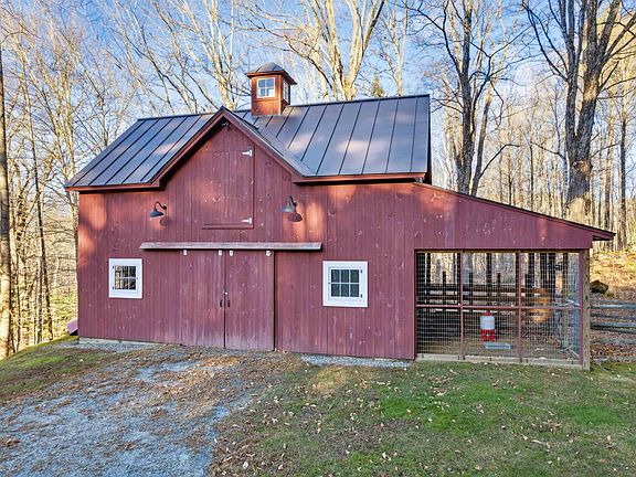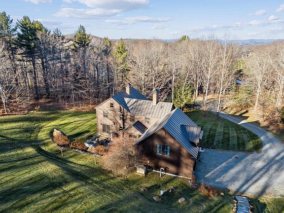 A classic, beautifully maintained residence in an exceptional location in South Woodstock, 8 minutes to the Village Green, in an area of substantial homes and estates, sited on 6 landscaped acres with mowed lawns, raised beds, stone patios and a charming red barn - suitable as a workshop, artist studio, storage for gear and motorized toys or for goats and chickens! The main residence features an open floorplan with modern kitchen, family room and sunny eat-in breakfast area all enjoying one of the homes 3 woodburning fireplaces. Also on the 1st floor is a larger formal dining room open to a living room with fireplace. The charming mud-entry area with slate floor has a private powder bath. Up the main front stairway is the privately situated primary bedroom suite with the 3rd fireplace, a walk-in closet and updated, lovely bathroom with glass/stone shower and separate free-standing tub. 2 other upstairs bedrooms (plus a smaller room with overflow bunk beds) share an updated hall bath that also has full-size laundry. The lower level has a fully finished workout/rec room. Above the attached/heated 2-car garage is a large private guest suite with vaulted ceilings, sitting/office area, kitchenette and an ensuite full bath. Off the kitchen is the outdoor and south-facing stone patio with lovely perennial gardens and stonewall for entertaining/ cookouts. This is a move-in-ready home, in an exceptional area! SEE FULL PROPERTY WEBSITE FOR FULL DETAILS!