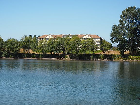 Stunning 2 bdrm, 2 bath condo at Rivers Edge. Luxurious condo has spacious open floor plan paired with amenities galore. Include Corian counters, gas fireplace, covered patio, w/gas hookup, heat pump, & more. Condo faces street. Corner unit. Includes secure access, garage space, elevators, river view root top deck, and gym. HOA's cover WSG, cable, internet, building insurance, maintenance & security. Great for 1st time buyers. Must see!