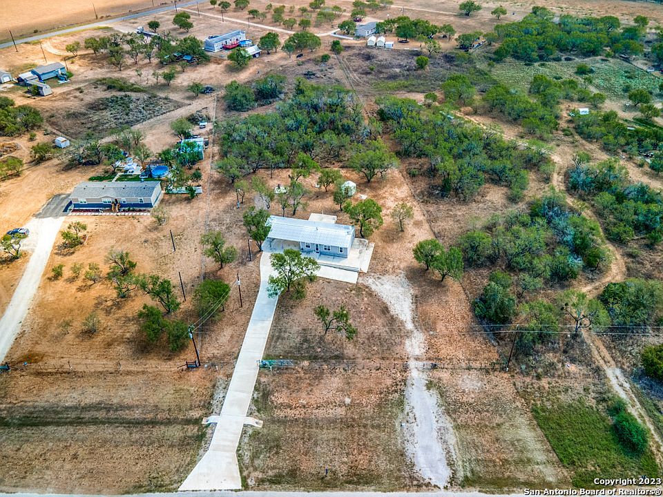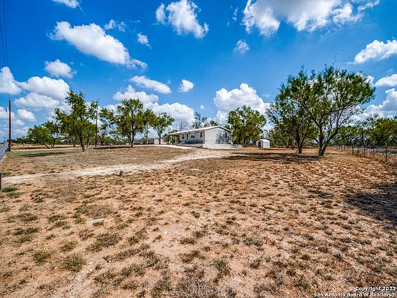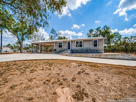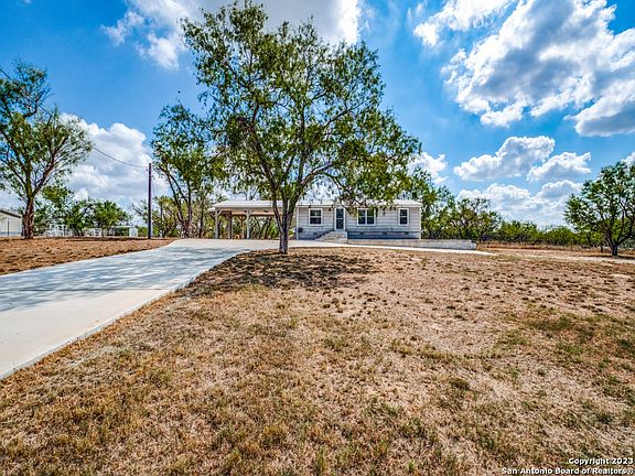 Country Living Awaits; Rustic Retreat on 2.72 Acres in Poteet, TX! As you drive up to this property, you'll immediately notice the fully fenced perimeter, complemented by an electric gate door with remote for your convenience. A circular driveway welcomes you and your guests, while a wide concrete driveway leads to an oversized carport, ensuring ample covered parking space. Inside, the home is an updated kitchen featuring modern cabinets and appliances. The master bedroom has a full bath with a garden tub and a walk-in closet. One standout feature of this property is the large concrete slab located at the backdoor. Originally intended for a future kitchen expansion, it currently serves as a fantastic entertaining area. Imagine hosting barbecues, outdoor dining, or simply enjoying the fresh Texas air in this space. Additionally, the metal roof provides durability and longevity, giving you peace of mind for years to come. Set on a generous 2.72 acres of land with sprinkler system in front and back of house, this property offers endless possibilities for outdoor activities, gardening, or even the potential for further expansion. The house may need some TLC, but it also presents lots of potential sitting on a generous 2.72 acre lot with utilities already on-site and an exciting opportunity for customization. Design your ideal space from the ground up, making it uniquely yours. If you're ready to roll up your sleeves and make your mark, this property could be your perfect match. Don't miss out on the opportunity to turn this house into a stunning home with ample land and utilities already in place.