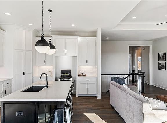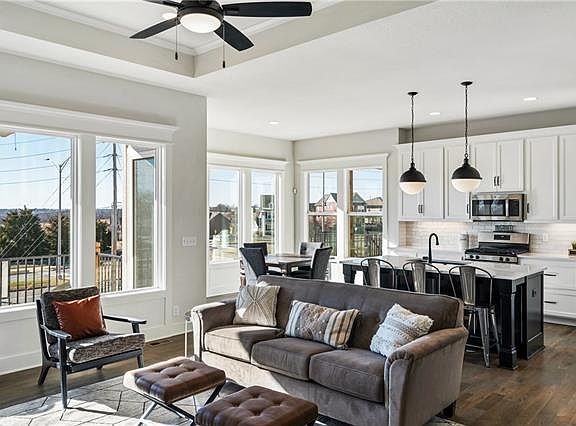 QUICK MOVE IN! Come see the new Monterey Reverse 1.5 by Inspired Homes & HURRY TO MAKE IT YOURS! True main level living complete w/ office/guest bedroom & bath. LIGHT & BRIGHT w/ Inspired Homes' custom oversized windows! UPGRADES GALORE- 10' ceilings, quartz counters, hardwoods, modern wide trim & more! Custom kitchen cabinets, oversized island & pantry. Master suite w/ separate vanities & HUGE shower! Main floor laundry/mudroom hidden by a stylish barn door. 3 car tandem garage-perfect for a workshop/man cave! Lower level w/ a spacious rec room, two more bedrooms & bath. Plus a covered patio overlooking the flat backyard! BUY WITH PEACE OF MIND, the convenience of new construction backed by 2-10 Home Warranty, 10 year structural, 2 year mechanical, 1 year workmanship. Located in ARBOR CROSSING - the newest Inspired Homes neighborhood in Lee's Summit. The community offers a full amenities package - playground, basketball, pickleball and OFF LEASH DOG PARK are opening Spring 2022! Competition sized swimming pool and clubhouse with cabana will be under construction soon as well! ****Construction photos of actual home, staged photos of prior model****