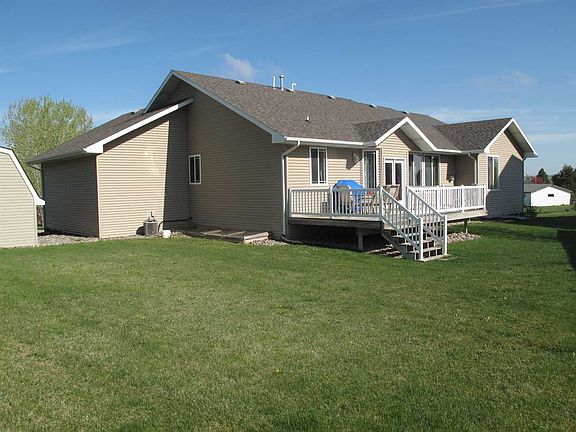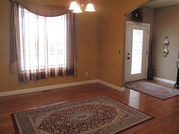 Enjoy spacious living in this 6 bedroom, 3 full bath ranch style home with 3882 sq feet! Location Location Location - this is it! Close to 3 schools, Maysa Arena, Shopping, etc. Plenty of room for a swing or bench on the covered front porch (city view) while you enjoy the sunset! The kitchen is so cheery and inviting; sit at the breakfast bar or enjoy the eat-in dining area with fantastic light streaming thru the East bay windows and french door leading to the 12'x23' deck with maintenance free railing. Kitchen is open to living room and features custom cabinets, beautiful crown molding, SS appliances, a large desk area, & pantry. Formal Dining also adds to the perfect layout for entertaining! Main floor laundry features lots of cabinets and a long countertop for folding laundry. Master bath features a large WIC, double vanities, whirlpool corner tub, and a separate room with walk-in shower (dual shower heads) and stool. Moen Oil Rubbed Bronze fixtures/faucets in all 3 bathrooms. The oak hardwood flooring, abundance of recessed lighting, the nine foot ceilings on main, custom shades, storage space for everything all add to the great appeal of this home! Two beautifully tiled gas fireplaces-one on main in Living Room and one in lower level family room. Family room is HUGE - perfect for family gatherings! Storage shed is 12 x 12 and has a roll-up door. Yard is professionally landscaped with sprinkler system.