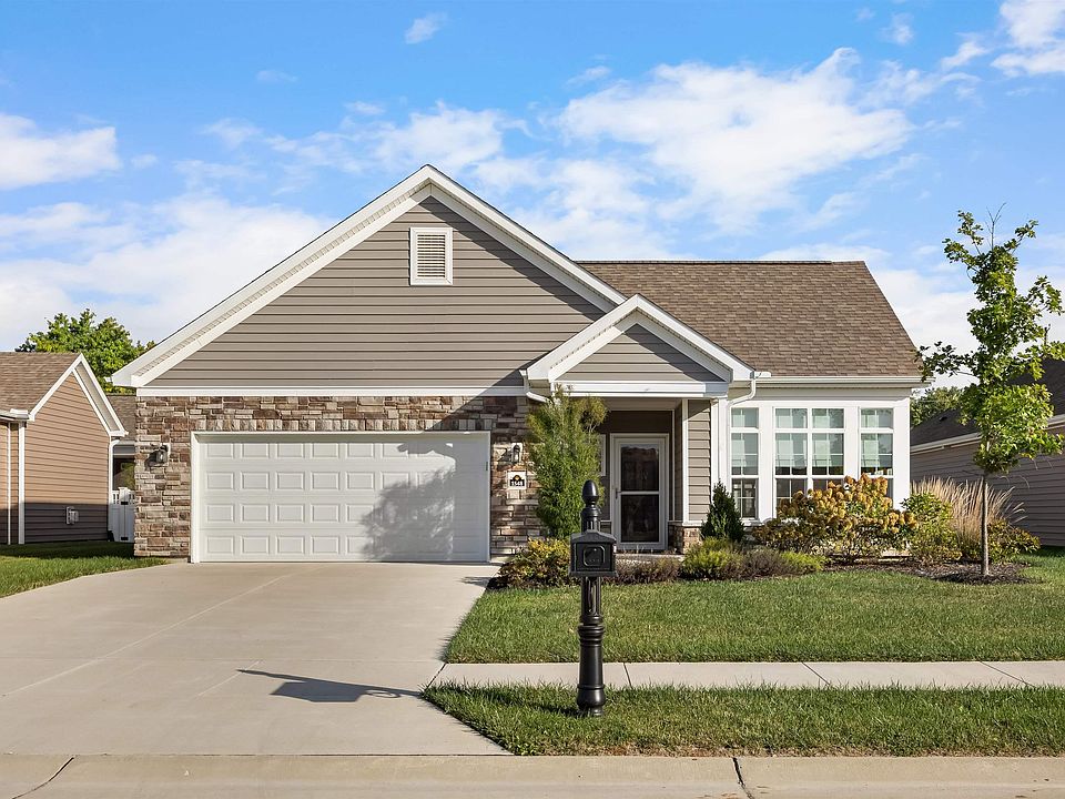 Discover this inviting 2-bedroom, 2-bath home with a 2.5 garage nestled in the desirable Soleado Vista neighborhood. With an open-concept design, the spacious living room seamlessly flows into the dining area and modern kitchen, featuring elegant tray ceilings that add a touch of sophistication. The kitchen boasts maple cabinets, granite countertops, and a breakfast island. The owner's suite offers a bonus room that can be used as an office, a walk-in closet and a private bath with a twin vanity and walk-in tiled shower. Relax in the four seasons room or on the fenced-in patio. Community amenities include a pond, pool, and clubhouse with a kitchen, exercise room, and bathroom. Maintenance fees cover pond management, street snow removal, and common area upkeep for a hassle-free lifestyle.