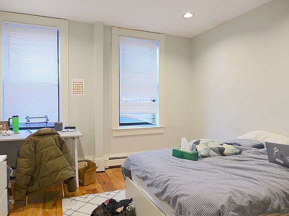 No real estate fee! Spacious and full of character, this pet-friendly two-bedroom apartment features two enormous bedrooms with ample closet space and a full bathroom. The expansive living area is bright and welcoming, highlighted by a bay window and stylish exposed brick accents. The kitchen includes bar stool seating, generous cabinet space, a microwave, dishwasher, and modern recessed lighting throughout. Beautiful polished hardwood floors and high ceilings complete the elegant look. Enjoy the convenience of laundry in the building, with neighborhood favorites like Milkweed, Mike's Donuts, and Greenhaus Cafe just steps away. Located a short walk to Stop & Shop, Walgreens, and both the Green and Orange Lines, this unit offers easy access to Northeastern and Fenway-area colleges.