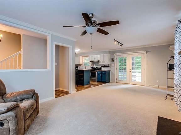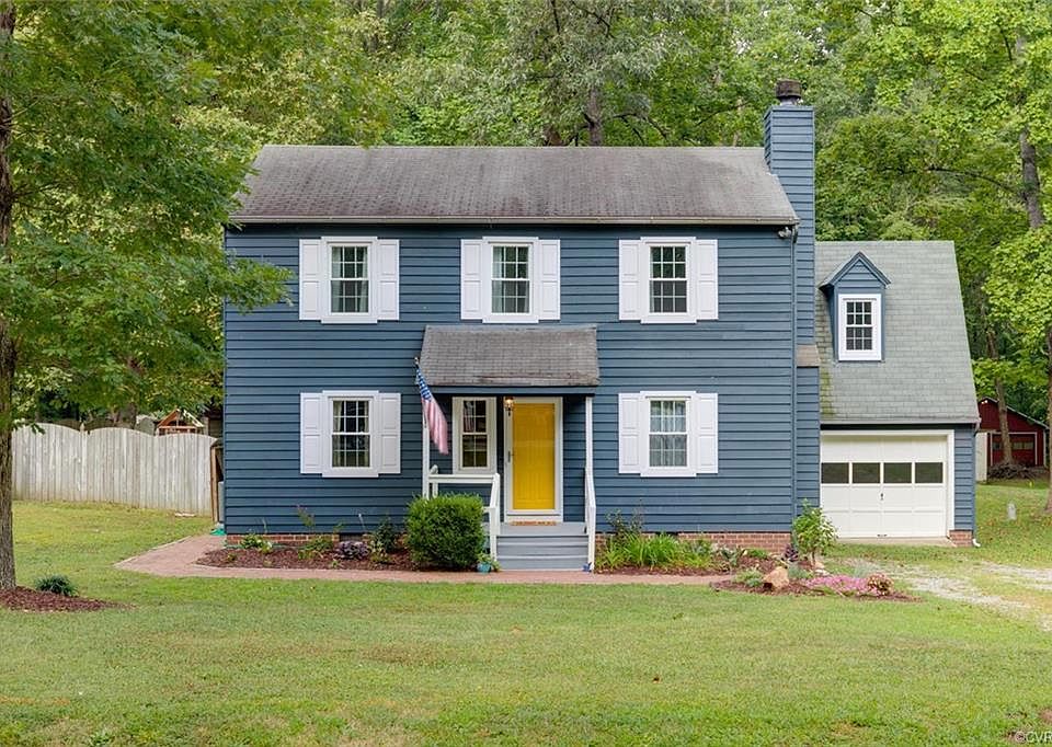 Come and see this traditional colonial on over an acre of land in the Robious Elementary, Robious Middle and James River High School district. The first floor features a large living room with wood burning fireplace and French doors to the spacious back deck, formal dining room and an updated open kitchen with new butcher block counters, ceramic tile backsplash, kitchen island, laminate floor and crown molding. There is also a utility room and 1/2 bath off of the kitchen with new LVP flooring and washer dryer. The second floor features a large master suite with walk in closet, new carpet and master bath with stand up shower and new LVP flooring. The large second bedroom features new carpet and has access to the walk up attic. The third bedroom features a 14'8" x 10'8" bonus room with new laminate flooring, perfect for an office or hobby room. Other features of the home include a spacious 1 car garage, oversized deck, brick patio and detached shed. Recent upgrades include new carpet through out most of the home, $14,000 in high efficiency vinyl replacement windows, butcher block kitchen counters and tile backsplash, new washer/dryer, laminate and LVP flooring.
