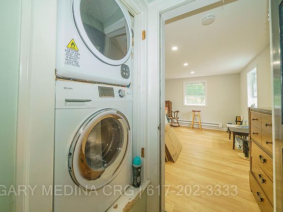 NO BROKER FEE - Please see the VR tour for this 2/3 bedroom on the second floor. 3rd room does not have a closet but is large enough to accommodate an armoire or used as a large office. This unit features an eat-in kitchen with a dishwasher, a moderate-size formal dining room, a large living room with a decorative fireplace, hardwood floors, a washer-dyer provided, garage and driveway parking, and walk to express bus, train, and stores. Parking for 2 cars is included in the rent. FIXED TERM