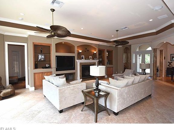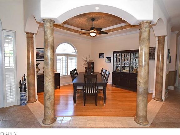 Welcome to Catalpa Pointe in the Iona area of Fort Myers. Catalpa Pointe is located within the gates of Catalpa Cove, a gated boating community in South Fort Myers that offers Tennis and a Community Gazebo with kitchen and playground. Catalpa Pointe is unique within the community offering a private dock with a tiled roof boat lift. This home was built in 2001 and is loaded with upgrades such as wind rated glass windows and garage doors, programable Lutron lighting throughout home, central vacuum, high coffered ceilings in every room. Large open floor plan with built in Entertainment Center and Fireplace and a large Formal Dining Room with bamboo wood floors. The home is complemented by Bahama wood Shutters and upgraded flooring. The Kitchen has a Center Island, Double Wall Ovens, 2 Dish Washers and food pantry. 2nd floor offers an oversized master suite with Media Room or play room. There is a second Fireplace, morning kitchen, wet bar and Full Bath on the second floor plus a large sun deck with River views and over looks the pool with waterfall. Oversized 2 car garage and Triton whole house generator. The canal has quick access to the Caloosahatchee River and Gulf of Mexico.