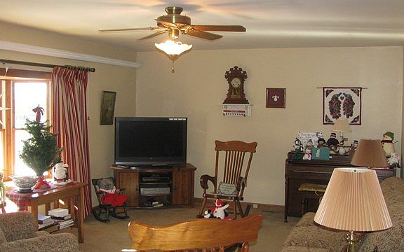 4 bedroom, 1.5 bath ranch home on 14.5 acres partially wooded with pond. Home features large living room , dining room and kitchen. Full basement, attached 2 car garage and a detached 2 car garage.