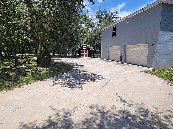 4.9 acres with well, septic, underground power, completely fenced, partially cleared, on paved road. Concrete driveway/gated. Property borders the Lake Townsen Preserve. Custom built 2 story concrete block home with 2 truck garage. 2 bedrooms, 2 and a 1/2 bath. Open floor plan. Waterproof vinyl plank flooring & custom tile throughout. Master bedroom has double French doors that open up to the 18'x8' balcony with composite decking. Large walk through closet into a large bathroom with a walk through double shower. Property also features RV accommodation with sewer/water/ electric connections.