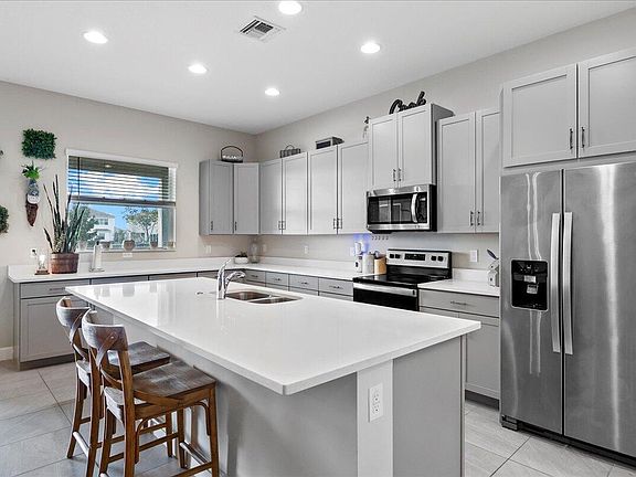 Beautiful 3 bedroom, 2 bath, in Meadows of Westlake Why wait for a New Built Home? Start living the Westlake lifestyle now! It's like being on a permanent vacation with Adventure Park, a two story water park slide, lagoon pool, pool side snack bar, clubhouse, adult and children's splash pad, BMX park fitness center and dog park. Premium Waterfront 3/2 home with 2 car garage is ready for you to move right it. This amazing home features many upgrades. Quartz countertops, hurricane windows/doors, water views from all main living areas & Primary Bedroom, Towering 10 ft ceilings, tray ceilings, 8ft doorways. Low HOA and Top Rated Schools. YOU DON'T WANT TO MISS THIS ONE!