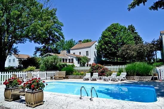 LAKEFRONT COUNTRY MASTERPIECE. Resting on a hill overlooking a glistening, spring fed swimming lake, this meticulously restored, highly upgraded American farmhouse style 6+acre estate overlooks neat rows of apple trees, perennial gardens, heated pool, pond and two charming guest cottages. The main house features 4 bedrms with a full floor master suite, a huge family rm w/stone fpl and vaulted pine ceiling. The two guest cottages are just steps away from the main home with manicured brick paths c onnecting the structures featuring kitchens, living and bedrooms with full baths and garages ~2000 added s.f..! There are 5 FPLC, custom details and built-ins, beadboard ceilings+walls, steam shower, and quality finishes throughout. The in-ground heated pool overlooks rolling hills & very private yard and pond. Full deeded rts. to sandy beach, cc ski/nature trails and the restored barn-500 feet from your back door and best yet-all maint. covered!!! 90min to Chi~10 min to UPier-20min to N.Dame