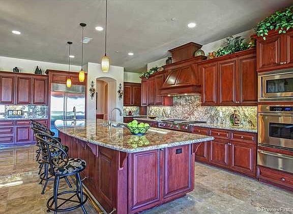 Distinctive custom estate home in Del Sur gated community. Dramatic open great room, elegant oversized master suite, huge office/media room, bonus room, game room, and attached casita w/separate entrance & mini kitchen. Exquisite upgrades include wood and marble flooring, natural stone baths and huge gourmet kitchen with high end stainless appliances, custom cabinetry and huge walk in pantry. Enormous backyard has mulitple entertaining areas, outdoor fireplace, sport court and ready for a pool if desired.