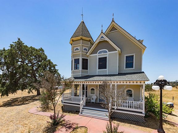 This 4 BD/2.5 BA custom home rests on 5 acres of beautiful land. With lovely sunset/sunrise views abutting 300 acres of grazing land, only 15 min. to Clovis, perfect for anyone who works in town but loves life in the foothills. Built in 1991, as a genuine custom Victorian home. Stepping inside you'll be drawn to the rich character of the hardwood floors salvaged from the old Millerton courthouse. Just inside is an elegant formal dining room w/ impressive double-hung windows overlooking the golden foothills. Enjoy family and friends in the den, kept cozy by a wood fireplace. The kitchen is classic w/ custom-built cabinetry, checkered white and black tiles and a pantry. Upstairs all 4 BD are tastefully adorned with antique door handles, light switches, and light fixtures collected from around the world. The newly painted grand master BD has numerous windows bringing refreshing natural light into the room. Don't miss out on the opportunity to own this special home.