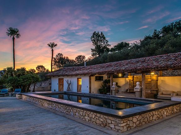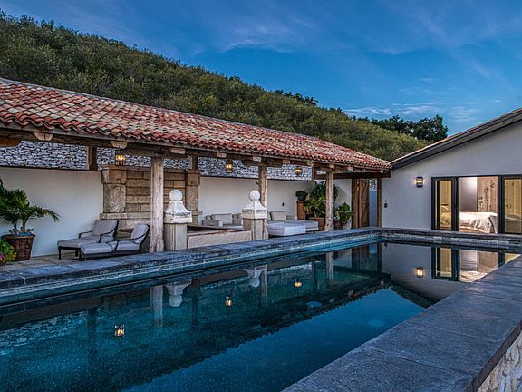 One dreams of the lifestyle created by this stunningly designed home beautifully set on a scenic, 2.5 acre parcel in Carmel Valley. Elevated and effortless living is delivered at this elegant and chic single-level hacienda. Seamlessly flow between interior and exterior spaces and be mesmerized by the endless views captured throughout the home and across the property. Southeastern orientation provides sun nearly all day, with a stunning glow that illuminates at sunset behind the Santa Lucia Mountains. Framed with the picturesque backdrop of the mature olive grove, nearly 450 trees, that are harvested annually, producing wonderful artisan olive oil. For the car aficionados, the property offers a spotless, detached luxury garage, fit with a lift to accommodate additional automobiles. A vibrant irrigation well provides water for all the landscaping needs, solar for the all the power, and a back-up generator to run the entire property when needed. This is next level in living.