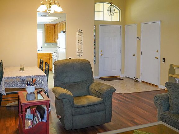 Ready for you to move in! One-story home with a large backyard for family and friends to get together. The backyard looks down on a small community park. There are two covered patios and several trees. This 3 bedroom 2 bath home has beautiful easy care wood look vinyl flooring in the living area. New exterior paint was done in 2021. Large 2 car garage with washer/dryer hookups. Family neighborhood with nearby schools, parks, and bike/hike trails. Easy access to Ramona Expressway and freeways. Nearby shopping and recreation. Easy drive to Soboba casino/resort, Temecula wine country, Idyllwild mountain community, and Palm Springs. This property is offered by oner for this reduced price and quick sale.