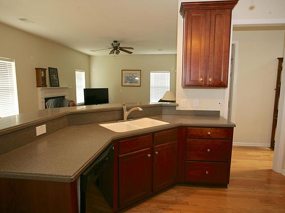 Awesome floor plan in the highly sought after Grand Oaks Plantation Community. This home is on a corner lot with a huge back yard. The first floor has beautiful hardwood floors, tile entryway, a formal dining room , open eat in kitchen, breakfast bar and a pantry. Beautiful cherry cabinets and Corian counter tops. The Open family room features a fireplace and has a surround sound prewired feature. To finish up on the first floor there is a bedroom for in-laws, guests, or it could be a wonderful study. Now lets go upstairs and you will see it has an enormous 30x12 master bedroom with his and her closets. Plenty of room for a sitting area, computer desk or work-out equipment. Master bath has dual vanities, garden tub and separate shower.