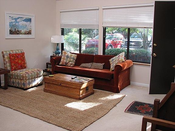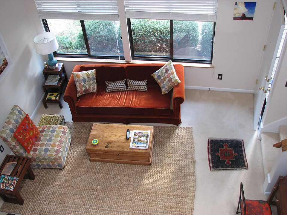 Beautiful unfurnished home for rent. No pets. Must be responsible, respectful, and a non smoker. One year lease. If that's you, read on! A 7-Minute easy drive to UVA and downtown means you're really close to everything, yet you can enjoy a quiet and unique natural, wooded neighborhood. Most ideal for a couple or single person, visiting nurse, etc. This is a two level 2 bedroom, 1.5 bath home in a very quiet neighborhood in Charlottesville. 1,000 sq ft. yet it feels roomy, because of high ceilings, sun-lit space and a very spacious master loft bedroom on the upper level. There is also an outdoor private deck on a small fenced-off back yard area. The home has many unique features, such as working fireplace, skylight which provides great sunlight, very high ceilings, nearby woods for great walks (pictured), and off-street private parkway. It also has a washer/dryer and a dishwasher. The master bedroom and full bath, with walk-in closet are on 2nd floor. Lawn care and trash removal are included. Very quiet and unique neighborhood near Albemarle High School. Must be amenable to removing shoes in home. Unfurnished, but negotiable on leaving a few items. Available mid to late August or Sept 1. Ownder pays for trash, recycling. Renter pays for utilities.