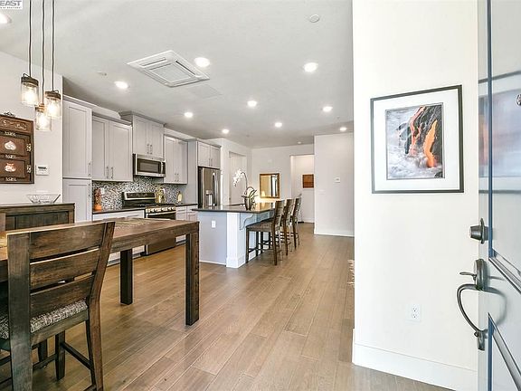 1549 Buena Vista is a 1,596 square foot corner home that offers open living combined with quiet and privacy. It features an appealing common area, with living and dining areas, powder room, as well as an open chefâs kitchen, complete with sleek cabinetry and an island with sink and breakfast bar. At the rear of the ground floor is the first of the homeâs three en-suite bedrooms, a spacious room with a large bath and a level-in shower and walk-in closet. The second level there is the primary ownerâs suite, with a spacious bedroom and a split bathroom, replete with a broad vanity with dual sinks, a large shower with seating, and a walk-in closet with custom shelving. On the other side of the hallway, youâll find a third en-suite bedroom with split bath. This quiet home is ideally located, steps from the Alameda Estuary and public shoreline walking trails and moments from Park Street. Also nearby is the soon-to-be-completed Jean Sweeney Open Space Park.