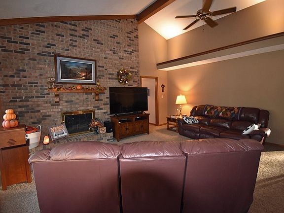 Desirable location just outside of town in nice neighborhood. Large lot with privacy in back to enjoy nature from the large deck. Over-sized storage building and deep 2-car garage. Inside, 3 bedrooms, 2 baths, laundry room, dining room and office. Cozy fireplace in living room with cathedral ceiling. Possible USDA financing. This home is well maintained and has new roof this year! Priced to sell!