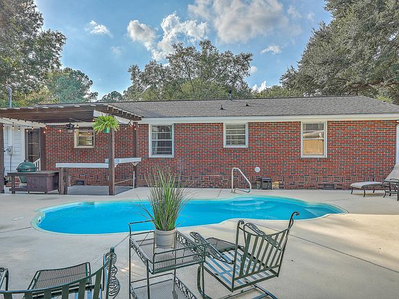 Located in the high-demand, centrally located Ashley Hall Manor neighborhood, this stunning brick ranch home has been updated throughout and features a beautiful pool and pool house in the private fenced-in backyard. The stunning curb appeal and grand oak tree will catch your eye as you first approach. There is ample parking on the extra wide extended driveway. Entering the home, you will see gleaming wood floors throughout, and appreciate the flowing, open floorplan with the primary den opening into dining area and the spacious kitchen plus secondary living space. The open kitchen features refinished white cabinetry, granite counters with an island, stainless steel appliances, and recessed lighting. There are 3 bedrooms, 2 full bathrooms, and over 1600 SF of space. Moving out back to theentertainer's space, you will find the covered patio with space to grill, the in-ground pool, beautiful landscaping, and the detached pool house. This pool house has cooled space to hang out plus a half bathroom, and behind the roll-up door is great storage for lawncare equipment. The roof ~2017 and HVAC plus ductwork ~2018 have been replaced, and the kitchen and baths have been updated. All of this in a quiet established neighborhood with no HOA, and easy access to all parts of town. 10 minutes to downtown Charleston, 20 minutes to Folly Beach, 15 mins to CHS airport, 10 mins to Mt Pleasant, and very convenient to multiple grocery stores, breweries, restaurants, and walking distance to the upcoming transformation of the Sumar Street project that is expected to become the hub of West Ashley with shops, green space, and more. This neighborhood falls in the preferred lottery zone for Orange Grove Charter School. Reach out to the school for specific attendance questions.