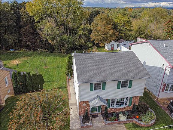 You'll appreciate privacy & seclusion in this wildlife habitat where wooded area in backyard abuts creek, yet property is close to Bethlehem city! View nature from grand Trex deck w/retractable awning or from sunny living rm! Well-maintained home has brick front w/vinyl siding & front porch. Enter foyer, pocket doors on right to tastefully decorated dining rm w/custom molding,chair railing& butler door. Completely remodeled kitchen has newer cabinets, counter stools by peninsula w/matching cabinets, dishwasher, microwave, stone tile flooring & exhaust hood over stove. Enter remodeled sunken living rm thru French doors. Room includes ceiling fan, track lighting, custom molding, side door & many windows w/view to deck. Hardwood floors & powder rm on this level. Upstairs are 3 ample bedrooms w/amenities incl 2 closets in master, 2 ceiling fans, carpeting, full bath & pulldown stairs to attic storage. Basement: finished family rm w/2 closets, ceiling fan & carpeting, separate laundry area w/Bilco doors & a sizeable storage zone. Property has AC, public water&sewer. Home warranty on AC & furnace still in effect. Ring & ADT Security systems. All window treatments, refrigerator, W&D, freezer, beverage refrigerator, deck boxes & shed remain. Roof replaced during this ownership. 2 parking pads in front. Stone retaining wall sets property line on left. Wonderful home, you won't be disappointed! Pls excuse that home is in pack mode! Showings limited to set appts w/agents, so call ASAP!