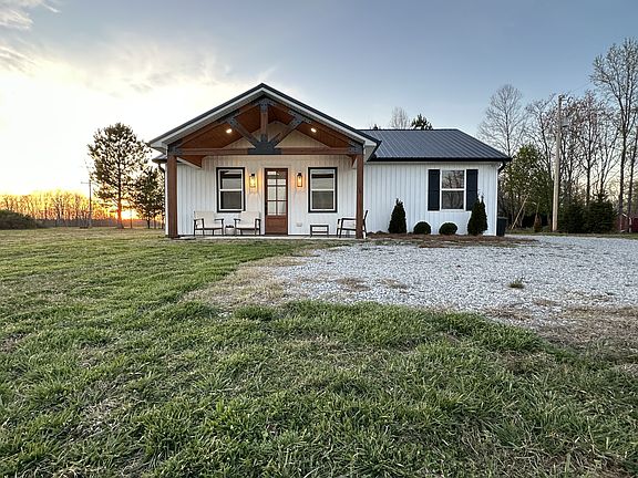 Nestled inside of the desirable Moore County, TN on 1.2 acres. This peaceful 3 bedroom, 2 bath home has all of the charm and comfort you will need. Enjoy the views from the vaulted front porch or the covered back patio. Step inside to the open concept living, dining and kitchen, all with a vaulted ceiling. The kitchen features custom cabinetry, an apron sink, tile backsplash, floating shelves, stainless steel applicances, quartz countertops and a butcher block island. Perfect for cooking and entertaining. The oversized master bedroom is finished off with a beautifully stained tongue and groove ceiling. The master also features a walk in closet with both a barn door and built in shelving. The master bath vanity offers plenty of storage and compliments the subway tiled shower beautifully. The secondary bedrooms are both situated off the living room. Both bedrooms have a large window that offers plenty of natural light and ample storage space in the closet. The secondary bath is located down the hall adjacent to the oversized mud room.